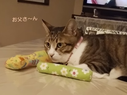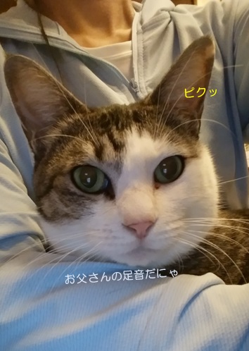 昨日は、お父さんのお誕生日に際し、たくさんのお祝いコメントをいただき、ありがとうございました♪本人も大変喜んでいました(^^)そんな喜んで帰宅したお父さんが、更に喜ぶ対応をしたのはこの方。チャコです(^^)夜、お父さんの帰宅時はにゃんルームにいることが多いのに、昨日はテーブルの上から、熱い視線を送り続けていました。「チャコと目が合っちゃってるんだけどぉ♪」と、言わしめ、そのまま撫でさせてあげる?というプレゼントを進呈(*≧ω≦)私はもちろん、プレゼント攻勢?九月場所では、稀勢の里タオルをゲット。高尾山では、福ふくろうとひねり餅を購入し~そして開催中の楽天さんのマラソンで、大容量モバイルバッテリーも購入しました(^^)更に昨日は、柿好き、糖質・カロリー&オイルオフのお父さん用に、柿ケーキを焼いてみました。柿の甘さがちょうどよかったらしく、今朝、もう1個を持って出勤したのですが、その時。いつもならバードウォッチングに夢中の朝なのに、ミツコがお見送りに出てきました♪こうして、お父さんはご機嫌で出勤したのでした(・´艸`・) ☆ご訪問ありがとうございます☆ ☆お手数ですがポチッとお願いいたします☆にほんブログ村