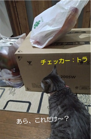 先月末に予定されていた、譲渡会は、緊急事態宣言発出中~ということで、またも中止でした。昨年は譲渡会の度に雨にたたられ、今年はコロナ(-∀-`; )どこかに、おいでの神様。どうか、動物が幸せになるチャンスをつぶさないでください( ̄  ̄;)ということで、昨日は、些少ながら物資をご用意して、里親会のS様をお待ちしていました。すると、玄関に置かれた物資のチェッカー隊がやってきました(・´艸`・)第1陣は母です。ったく~可愛いくにゃいわねぇ無理のない範囲なら、継続してご支援できるでしょ(・∀・;)いいの、せこくても!ん(*´・ω-)b?ミッツまで~(´д`)と、チェッカー隊にケチをつけられましたが、無事にお渡しできました(;^ω^A 今月末は、譲渡会が開催できますように。
