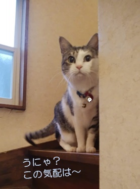 一日に2回というお宅が多いようですが、kumaru04家にゃんずの食事は、朝・昼・晩と、一日3回です。そして、食事の前に(今の時期だとまだ)白湯を飲んでいるので、取り替えています。すると~腹ペコミランがやってきます(・´艸`・)もちろん、あとのふたり、チャコととらぞーきゅんも続きます。ご覧ください、この見事な3にゃん飾りを(*≧ω≦)はい、今お持ちしますから、お部屋で待っててね~言うが早いか、一斉に2Fのにゃんルームへ一目散♪ということで、ほら、トラちゃん!腹ペコの娘たちが待ってるんですから、起きて!…タクシーねぇ、仕様のない子ねトラちゃんのいう、タクシーとは…お父さんのことです(-∀-`; )左手でトラちゃんを抱っこして、右手でご飯のお皿を載せたトレーを持って、にゃんルームへ、なんて、いくらにゃんずが可愛いからって、そうやって甘やかすから、ご飯=連れて行ってもらえる、って学習しちゃったんでしょ~!まったく、子供たちが真似したら困っちゃうわ…(*´-ω・)ン?ミッツ、すごくにゃいの(・∀・;)真似しちゃいやよー(ToT)