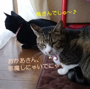 お外=眺めるもの、という我が家のにゃんずからすれば、