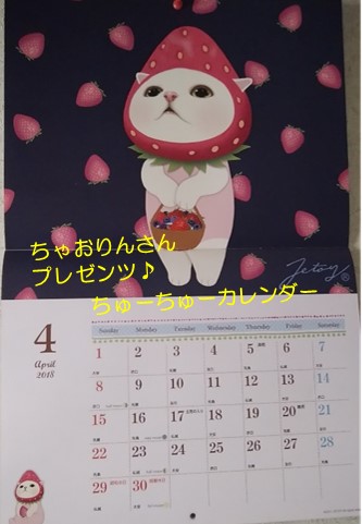 そして、今月のちゅーちゅーカレンダーも愛らしいでっす♪