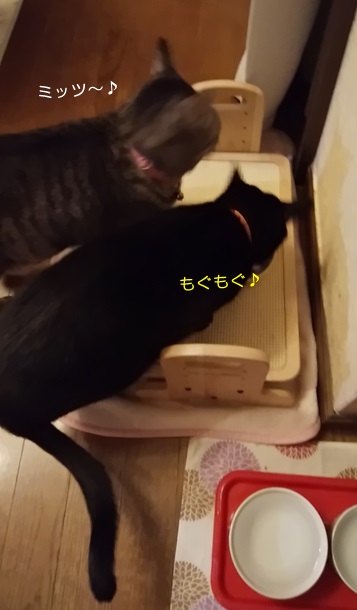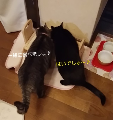 普段、トラちゃん母娘とは違うフードを食べているので(年齢的に)