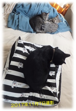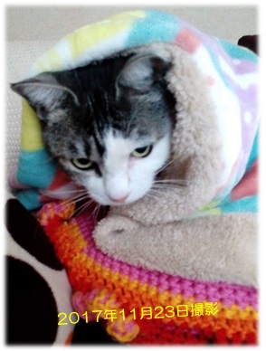 さて、今朝はかなり寒いのか、布団の中で猫団子しています(^^)