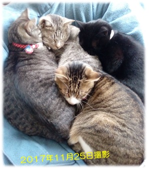 それを見守る、トラトラ猫団子(*≧ω≦)