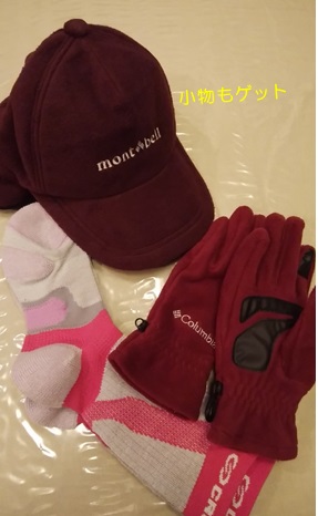 他に、耳あて付きのキャップやグローブなどの小物も購入~