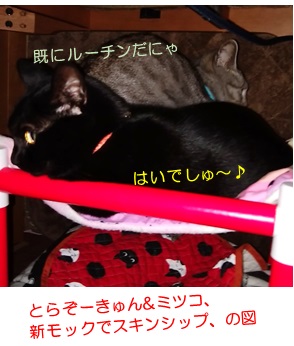 例によって、お父さんをソファにしてご満悦のトラちゃんですが、