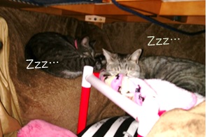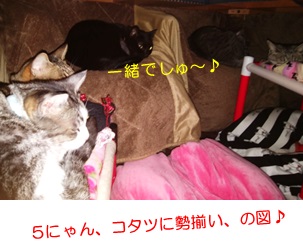 5にゃん揃って、寝んねしているわけです(^^:;