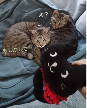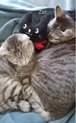 トラトラコンビが勘違いしたまま、一緒に寝んねしてます(=^・^=)