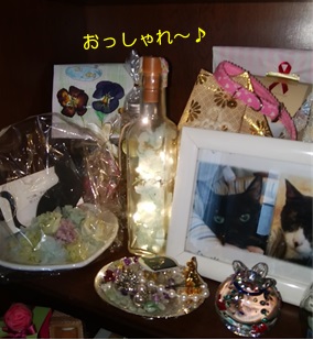 お洒落な瓶にはお花が入っているので、早速お供えしました。