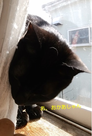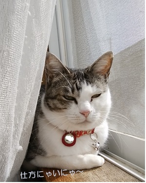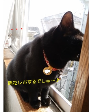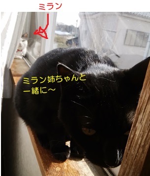 窓辺で佇むミツコが、エールを送ってくれていました(〃▽〃)