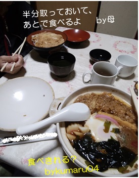 母は卵丼で、私は鍋焼きうどんを食べまして…