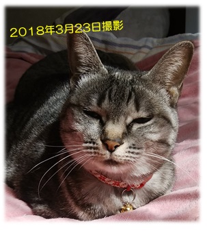 眩しい陽射しだと、いつもすっごく怖いお顔になるトラちゃんが、