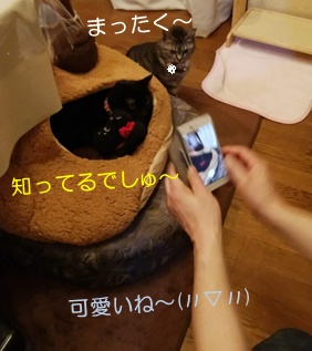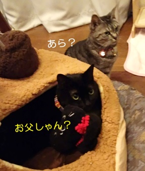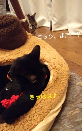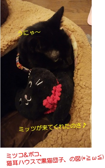 ミツコとポコが猫耳ハウスに入っていました(・´艸`・)