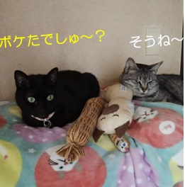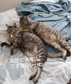 私たち母娘5にゃんは、奥床しいので2Fに引き取りました。