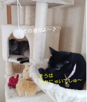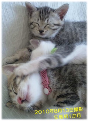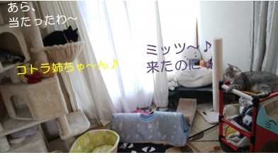 1Fで引っ付いていたはずの、母猫と養子(ミツコ)も、
