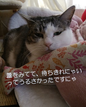 ホカペの半分でまったりするミランがひとこと。