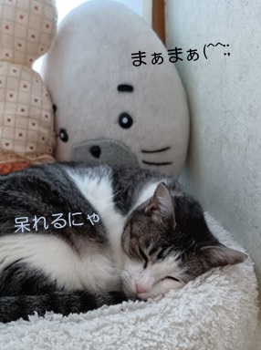昨日もおやつを食べる前、にゃんルームに見参すると~