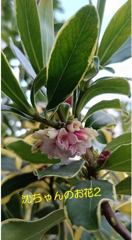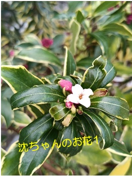 その上げ下げ窓から確認できるお花は沈ちゃん(沈丁花)ですけど…