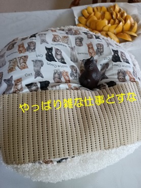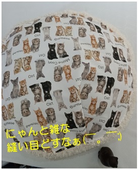 にゃんこ柄の可愛い布ですが、このままだと滑るにゃ~と思い、