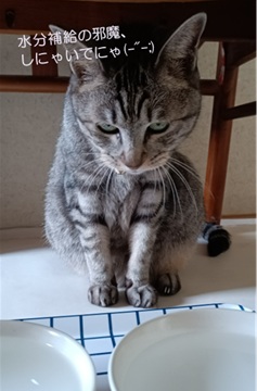 2Fにゃんルームの水飲みの前で誰かが、佇んでいます。