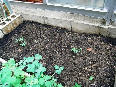 いつもより1時間早く起きて畳2畳分ほどの裏庭畑へ。あいにく雨ですが、桃太郎トマトを2本、使い残した小ねぎの根っことニラの根っこを数本、まるでプランター植えのような感覚で。節約節約。 トマトと玉ねぎはモチロン農園にも植えますが、手の届くキッチン菜園はとても重宝ですもの。 ただ日照が心配ですけど・・・。 苗植えの後は、雨の中パパイヤ収穫、ニラもあるし、今日の朝ごはんゲット。 豪快に丸ごとパパイヤ、ローゼルコンビ。これ、グラン婆ちゃんの朝ごはんよ。