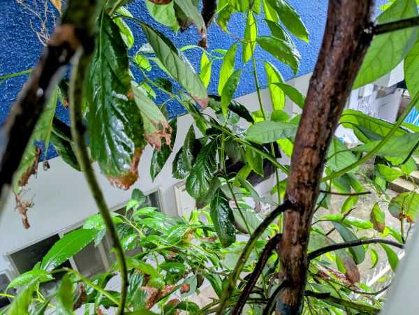 8月15日(金)旧暦6月22日 六曜は「先負」 2週間余りコロナにさいなまれた生活を送った結果、微妙に環境が変わってしまいました。 一昨日病院に行く予定で、愛車の軽トラを運転していたところ、突然スーッとエンジンが止まってしまい動かなくなってしまったんです。 病気になる前、ガソリンを入れ、バッテリーも変えたばかりの軽トラです。 時々修理も頼んでいるスタンドに電話して、診てもらいましたが、どうにも動かせないとの事で、一晩道路脇に留め置くことになってしまいました。 翌日、近くの修理工場に連絡し、仕事いっぱいのところ、無理やり引き取ってもらったのですが、順番もあり、修理にかかる時間は長くなるとの事でした。 もう古いのでそろそろ寿命の軽トラでもあります。もしかしたらこのまま廃車という可能性も考えられます。 「やばいなあ、車生活終わりかかも」 と、つい考えてしまいました。 実際、当分車が使えないわけですから、そう言う生活になってしまうわけです。 昨日は病院にはバスで行き、コロナ終結を確認し、咳止めの薬を貰い、待合2時間のバスが待てず、歩いて帰途につきました。 「あらら、生活一変しそうだわ」 島で車のない生活なんて考た事がありませんでした。 我が家の裏庭のカニステル木、この木はもう何年も小鳥たちの住処になっていて、朝な夕なの小鳥のさえずりがうるさいほどです。裏ベランダから覗くと、たくさんの小鳥たちが群れているのがよく見えました。 <建物の間に挟まって大きくなった> <裏ベランダからすぐ手が伸ばせる> ところが数日前から、急に小鳥のさえずりが聞こえなくなりました。夕方の小鳥たちの帰還の時は、この枝がゆれるほどですが、ここしばらく全く小鳥の姿が見えません。どうしたわけかある日、小鳥たちが突然いなくなったのです。 小鳥がすべていなくなるなんて初めての出来事です。先月大まかに数えた時は70~80羽くらいは確かにいたのですが、今1羽もいません。 考えられない事ですが、集団で引越ししたようです。 謎過ぎて訳が分からないのですが、とにかく我が家から小鳥の姿が消えてしまいました。 そして、割と近しい友が亡くなりました。長い付き合いでしたが、コロナの病が明けた時、その方の死を知った時は、それ以前のいろいろな事情を知っていただけに、その人生の結末を妙に納得してしまいました。 また一人友が逝ってしまい、世間は昨日と同じではなく、変化しているんだとつくづく感じます。 取るに足らない変化だったり、大きな変化だったりいろいろあります。 同じ空気の中で生きているのですから、小鳥がいなくなっても、車が故障してもその振動は何かしら誰かしらに、何かの影響をあたえるかもしれません。 車は私に生活への影響を与えつつありますし、移動した小鳥たちはどこかで何かをもたらすかもしれません。 明日はどうか良い日でありますように。
