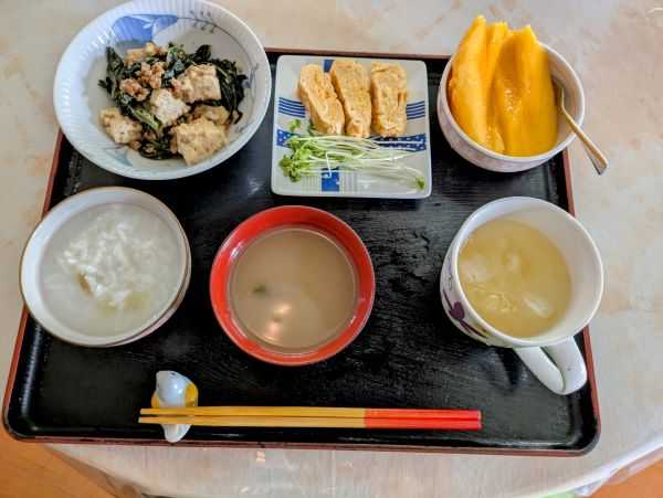 8月28日(木) 旧暦7月5日 六曜は「赤口} 最近、文章がくどくなってきたので、昨日は1500文字程度にしようと努力するも、まとめられず、逆にいつもの倍の時間を費やすというお粗末になってしまいました。おかげで「ウォーキング」ができなくなってしまいました。考え出すと何を書いていいのかわからなくなるのですよ。 一応、なるたけ短くを意識しつつ、パソコンに向かったところです。 今日は島尻の友人宅を訪ね、1~2時間の予定が4時間も居座ってしまいました。友人のお宅へ伺うのはケイさんち以外では珍しいです。しかも我が家から遠い島尻へ、よそ様のお宅のインテリアもお勉強しつつ・・・ 手芸が好きな友達なので、家の中はドレッシーなのれんや、居心地の良い大~きな丸テーブルがあり、なかなか良い雰囲気です。 いやいや私も家に帰ったら、おうちの総点検しなくちゃ。頑張ります‼ 朝、突然雨が降りましたが暑さが収まらず、今日からご飯を「冷やしおかゆ」に変えました。冷たくしていただく私流「冷やしおかゆ」。前の晩に作っておいて冷蔵しておきます。 暑い日の身体を落ち着かせてくれるのです。それにご飯を冷たくして食べると、レジスタンススターチが増えてダイエットにも良いとか? <朝ご飯は、塩サバとほうれん草のバター炒めで> ふと、窓の外のプランターを見ると小ネギが少々。 「あら、小ネギが残ってたわ」 大急ぎで小ネギをカット、出来上がったお味噌汁の中へ散らし、採りたて小ネギの香りを味わいます。 <小ネギと、デザート用のカニステル> 我が家のカニステル(ちっとも美味しくない)とは違う、甘いカニステルでしたので、デザートに食べようと思い、割ったら・・・なんと素敵 。 <中で芽を出していた> 農園のストレリチア畑には、特大玉の甘いカニステルを2本植えたのですが、今はストレリチア畑ごとカニステルも手放してしまいましたので、これはラッキーなプレゼント。 ここにいる限り、大事に育てましょう。