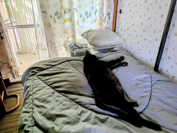 10月12日(日) 旧暦8月21日 六曜は「仏滅」 暑さがなくなったわけではありませんが、朝の空気のさわやかな事。 起きるとすぐに家中の窓を開けますので、流れ込む空気が心地よくなってきました。 娘たちの所はすでに、肌寒くなっているそうです。 昨日は、公立病院の耳鼻科を予約してありましたので出かけてきました。コロナの後、左耳が聞こえづらくなり1か月間お薬を頂いていました。長年の耳鳴りは無理でしたが、左耳は何とか普通に聞こえるようになりました。 若い先生曰く、 耳鳴りは治すのが難しいですね。加齢のせいもあるし、耳鳴りの薬が発明出来たら、ノーベル賞ものですよ。 そっか、耳鳴りって治らないんだ、 そう思って、私も耳鳴りで耳鼻科を訪ねたことはありませんが、耳の中のキーンキーン音は24時間やむ事がないので、時々神経に触ります。誰かノーベル賞を狙ってくれないかしら。 パッションを刈り取った窓の外では、アボガドが力をつけてきて、どんどん新芽を伸ばしてきています。朝の涼しい時間はスズメがよく来るので、朝食前の1時間ほど、スズメの声を聞きながらこの場所で色々調べものなどしています。エノキダケのレシピとか、植物の育て方とか・・・ <アボガドの新芽が上へと伸び始めました> 少しは頭も使うんです。いつも行き当たりばったりではありますけどね。 今日は絶対昼寝を我慢しようと思い、いつもより食事を少し減らしました。 昨日のタコライスの残りミートにピーマンとエノキダケを入れたちょいピリ辛のピーマン炒め、エノキのカリカリで合わせて200g分、おにぎり1個、でも食べたのは半分。後は美味しいお茶で・・・ 満腹感が眠たさを引き起こすのかもしれませんから。 でも、体重はさらに減って、現在51.75㎏になりました。友人が送って来てくれた写真を見ると、まるで足が棒切れのようです。足に筋肉をつける運動が、今後必須になりそうです。 健康になるという事は一筋縄ではいきませんね。 昼寝をせずに頑張ったのは、ホームビジットの食卓の工作、多分、我が家にはドラえもんのポケットがあるかもしれません。物置をあれこれ探っていましたら、大きな天板を見つけました。そういえば昔お店のテーブルを作ってもらったことがありました。いらなくなったで物置行きになったものです。 重たかったんですけどね。 何とか2階に上げて、ロングテーブルを作りました。片方の足に碁盤の台を使い、私が乗っかっても、大丈夫なように固定しました。微調整は必要ですが、何とか行けそうです。 <8人座れそうだし、良い良い、今回はこれで良い> <ほら、チビチビも気に入ったみたいです> 明日は食事の材料を調達です。