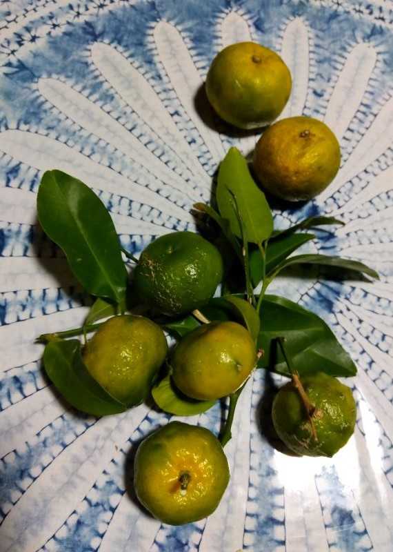 畝間に勝手に生えたカラシナさん   取り残されてたシークヮサー君