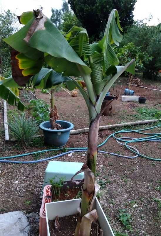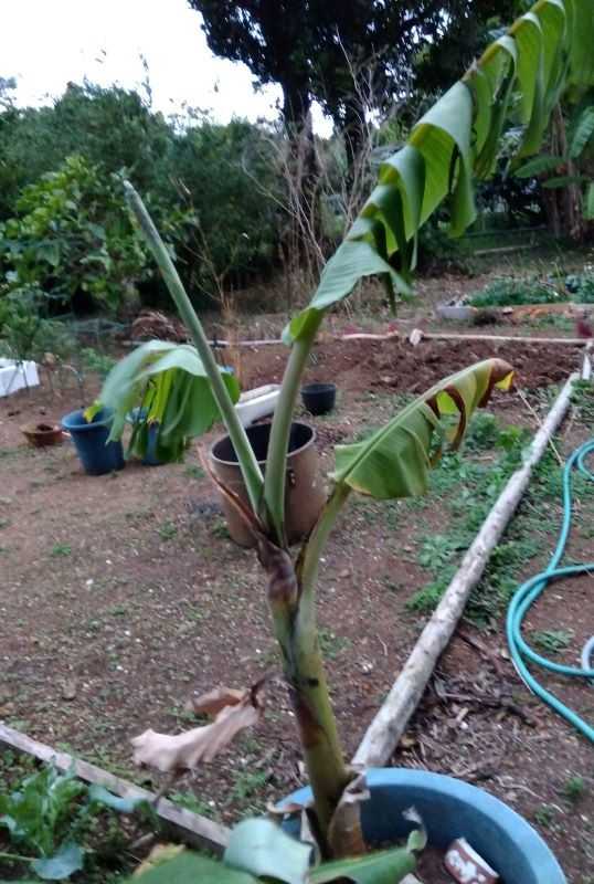 鉢植 えのバナナも、すっかり縮んでしまいました。このままですと、葉が全部やられかねません。この場に立っているだけで、吹き降ろす風で身体が冷え込んでしまいます。寒い寒い。