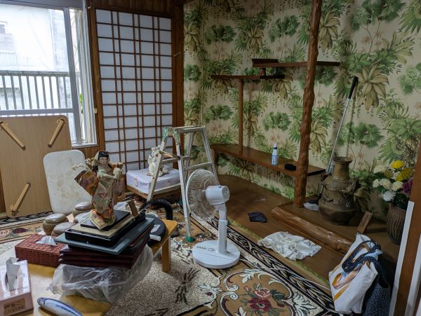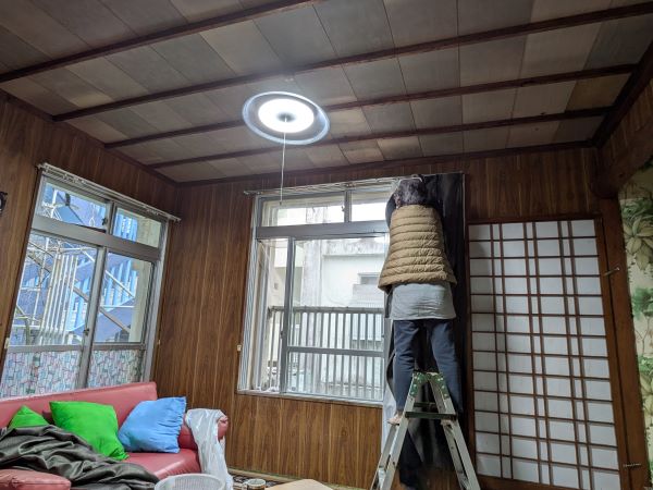 という事で早速、カーテンを外し洗濯、小物をどけて、壁を拭いて天井まで…婆ちゃんは大掃除