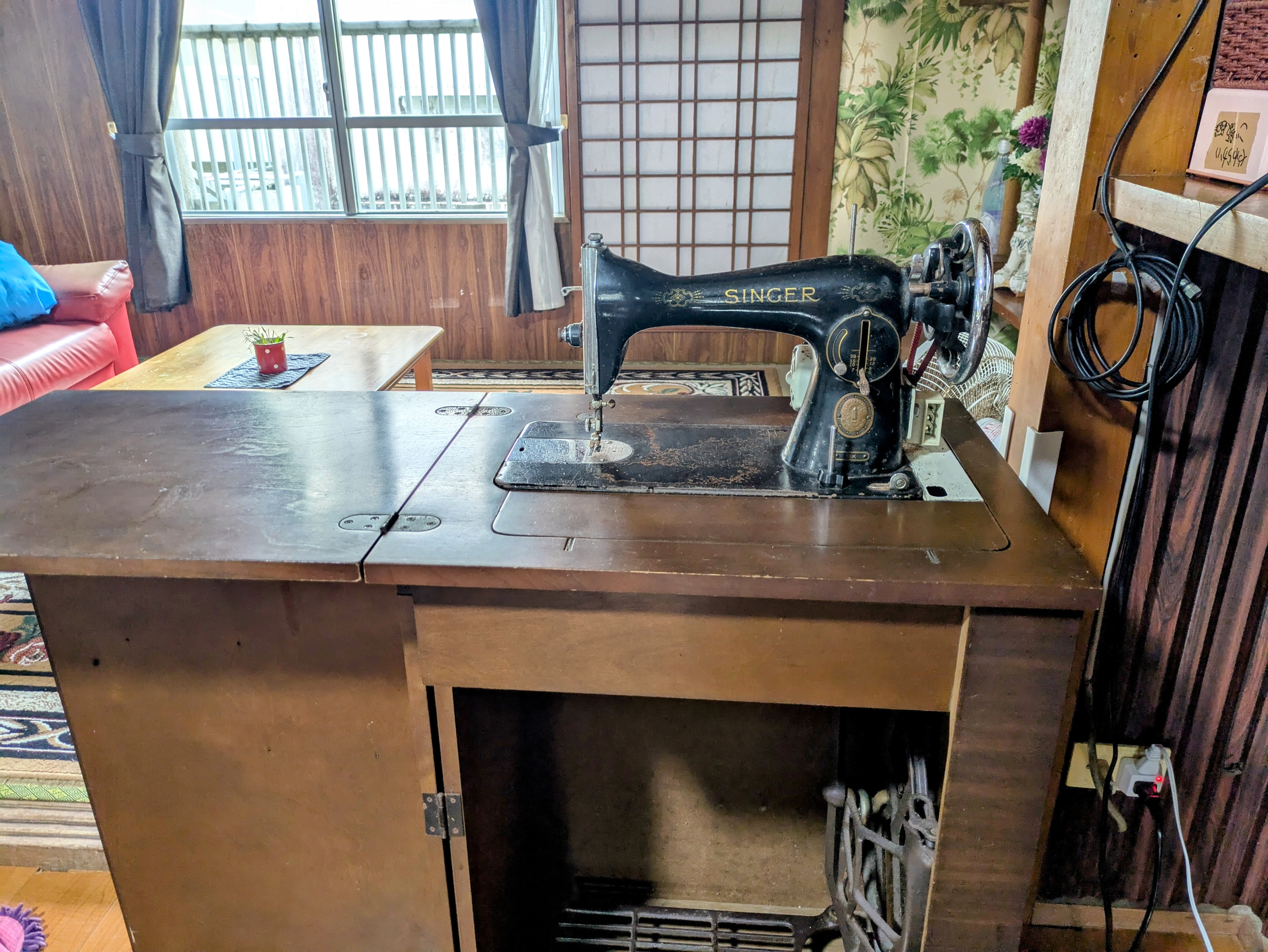 断捨離のつもりで小物も整理しながら、3時間頑張りましたよ。台代りに使っていた母のミシンも、久しぶりに取り出して手入れをしました。重くて動かせないので、28年間しまいっぱなしだったのです。