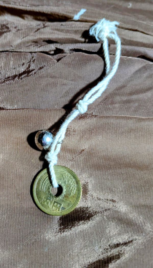天井のホコリも払って、壁も拭き掃除、カーテンも取り外し・・・おっ、ストラップの5円玉めっけ!三文の徳あり?