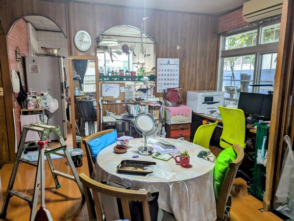 ですが、早起きしすぎたので、食事の前にお掃除をする事にしました。一昨日「和室」を片付けましたので、今日は「リビング」をお掃除しようと思ったのです。天井・壁の拭き掃除も含めて3時間くらいの時間を取りました。昨夜ごちゃごちゃにして寝ましたので、恥ずかしいほど散らかり放題です。