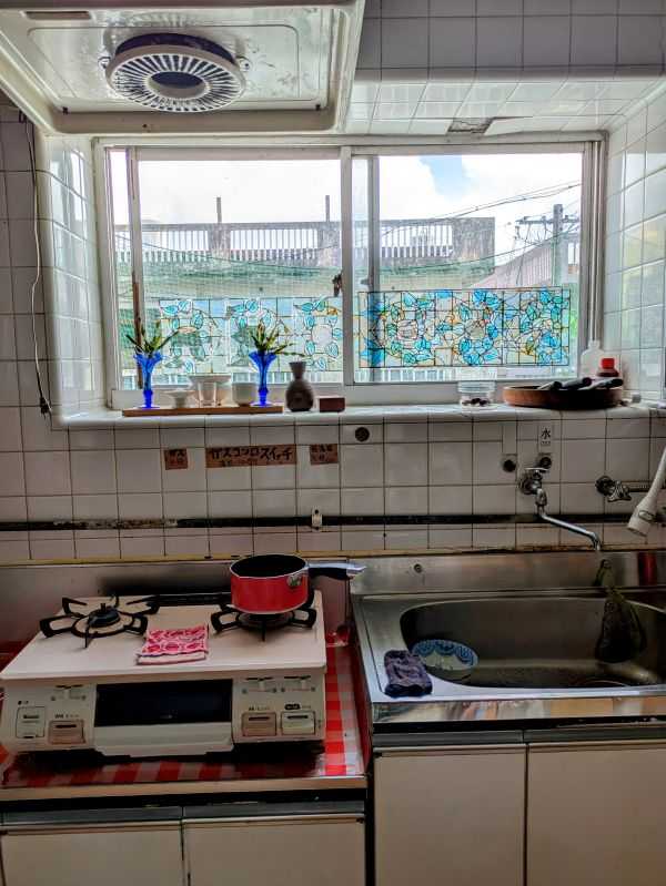 家の中央、廊下から右(東側)は、台所、個室、お風呂場、トイレと続き、台所以外のすべてはドアでシャットアウトできます。台所の窓だけ、日差しを避ければ、差し込み陽の暑さを最小限に抑えられるかもしれません。