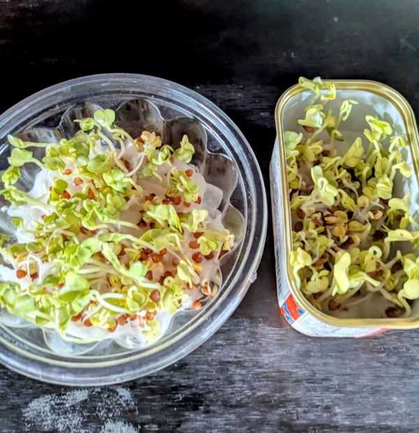 <サラダの材料カイワレ> <玉ねぎのクルクル新芽>