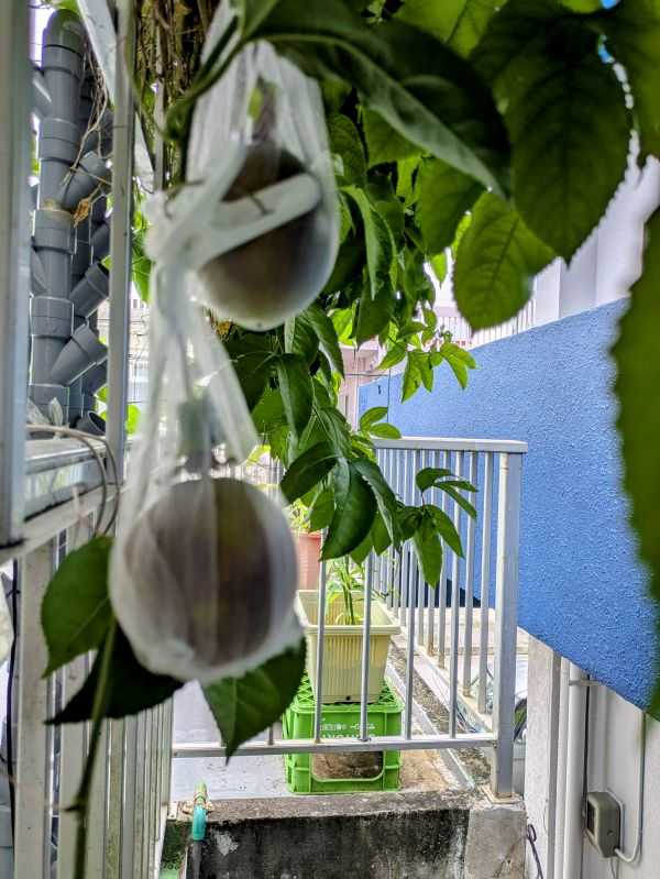 朝のベランダに出ると(一昨日頃から、雨降りに合わせてベランダと玄関外廊下の掃除をしているのですが)パッションの実が元気をくれます。
