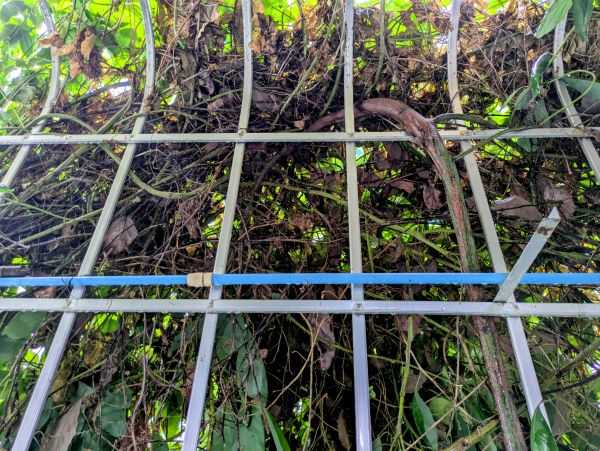 でも、ほんとは外廊下のパッションの剪定をしたかったんです。アボガドの木に巻きついたパッションを切り取れば、外廊下のパッション剪定終了だったんです。