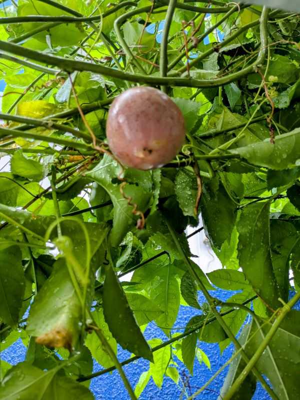 昨日はぐうたらしてしまいましたが、遅くからエンジンがかかり、外廊下のパッション刈りを再開しました。最後に1個だけ残っていたパッションは、いつの間にか消えていました。熟して落ちてしまったのでしょう。以後行方不明。