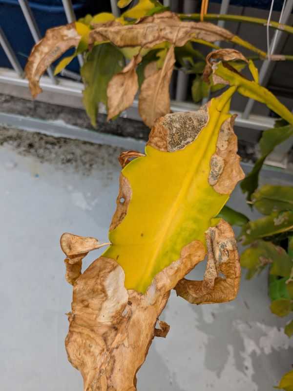 移動させていたのに、以前の日焼け跡が広がってしまった月下美人は、完全に葉っぱが枯れてしまいました。