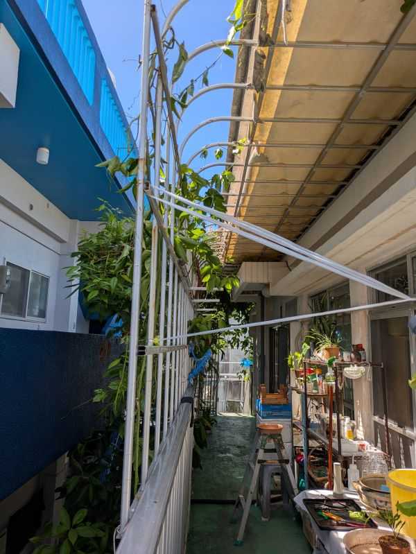 今の木漏れ日風な日当たりで、ランが日焼けを起こしているのに、もうちょい もうちょいと刈っている間に、丸ハゲになってしまい、栽培器にもろに直射光が当たってしまいました。