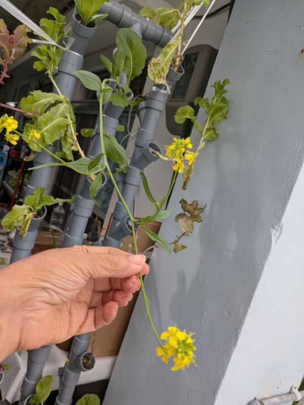 、水耕器のからし菜も、おそらく急な温度変化で、花が咲いてしまいました。