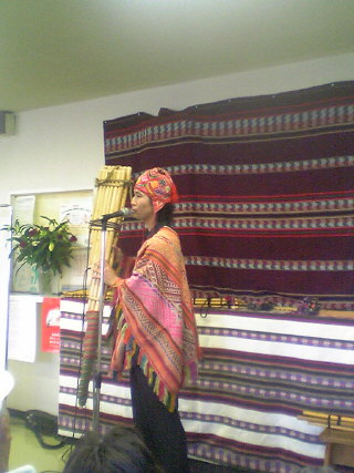 近所の外科・胃腸科医院で、ケーナのアフタヌーンコンサートがありました事務員さんが来て下さいねと案内を下さいました。ケーナは聴いたことがないので、すごく楽しみでした15時開場の15時半開演なので、15時20分ぐらいに行ってみたら、大勢の人でした。待合室と言うか入ってすぐの所が会場なのですが、70~80人ぐらいの人が待っていたのでビックリ ステージが見えない場所は空いていたのですが、見たいので、立ってみることにしました。ケーナ奏者は「グローポ・アルカディア」という日本でトップクラスの民族音楽集団の一人です。登場したのは、ペルーの民族衣装を着た20代(多分)の男性です。ケーナとは、竹や葦で作った縦笛です。古代のケーナには人骨で作った物もあるそうです。足の太ももの縦の骨です。亡くなった女性の骨で作り、その笛に亡くなった女性の名前のケーナと名付けたのが、ケーナの始まりだとか・・・このように説明されたのですが、ちょっと違っているかも知れませんケーナの他に、ケーナの仲間の楽器の説明もしてくださいました。四角の笛の「タルカ」、山羊の爪で作った「チャフチャフ」、アルマジロで作った「チャランゴ」、サボテンで作った「パロデジュリア」後、穴が3つしかない笛もありましたが、メモを取るのを忘れました。これまた名前を忘れたのは、これです。吹き口が2段や3段になっています。慣れないうちは、唇を切るらしく、吹き口が血だらけになったりするそうですアルマジロで作った「チャランゴ」は、これです。ちょっとマンドリンっぽかったです。弦が10本で、ウクレレぐらいの大きさです。弾きながら1曲歌ってくださいました。歌も、とっても上手でした。彼のお父さんは、ラテン歌手だって お話しと演奏が始まって45分後、20分の休憩でした。ジュースとお菓子が配られました 入場無料なのに、大サービスです。後半は、着替えて登場です持っておられるのが、ケーナです。演奏曲は、南米民族音楽のフォルクローレの曲が中心でした。ピアノ伴奏や、他のケーナのCDを流しながらの演奏でした。普通の曲も演奏してくださいました。「花みずき」って言う曲は、涙がでそうになるぐらい素敵な曲でした。「スピカ」のような感じかな?ケーナの音色は、マサムネ君の声のよう・・・ってスピ友さんのMさんが言われていましたが、ホントにそのとおりでした 綺麗な透き通る音色は、マサムネ君の声と同じでした 聴いていて、すごく幸せな気分になりました 他には「涙そうそう」「アメイジング・グレイス」これは独奏でした。「コーヒールンバ」「情熱大陸」です。どれも良かったです。アンコールは、フォルクローレの代表曲「コンドルは飛んでいく」です。終わったのは18時前でした 聴きに行って、本当に良かったです。ホールで聴くと、S席4000円だそうです「グルーポ・アルカディア」の演奏を、是非聴いてみたいな音楽って、ホントに素晴らしいですよね。