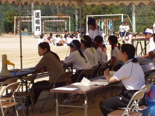 次女の中学の体育大会でした 何で体育祭って言わないのだろう すぐケチを付けたくなる私お天気は、晴れでした 日なたは暑いけど、日陰はひんやりとしていました。中1なので、この中学の体育大会は初めてなので、期待大でした3学年8クラスなので、グランドの広さはちょうどいい感じで、階段状になった観客席も広々で、いい感じです ただ、本部席の後ろから観戦できるのですが、本部の向こう側のグランド側や、さらに向こうの生徒の席には行けません次女は、部活が放送部です その放送部が進行の放送をします。1年生からは2人が、言わせてもらえるのですが、それに選ばれたと張り切っていました予行演習では、かなり緊張したそうなので、ちょっと心配でした。次女の出番は「150m走」で選手紹介です。Uさんと話していたら、「ん?」どこかで聞いたことがある声が・・・と思ったら、次女でした 慌てて、本部席に行き、ビデオに撮りました 後姿なんですけどね アナウンスはと言うと、ふむふむ、結構やるやん 練習の甲斐あって、OKだったと思います ホッとしました。解かりにくい写真ですが、こんな感じでやっていました。競技は、走るのが中心でした皆、楽しそうで、なかなか良い感じでした「混合リレー」ではミキサーの仕事もしていました途中、吹奏楽部の演奏がありました かっこいいなぁ~♪私も参加したいぐらいです。本当は、次女には吹奏楽部に入って欲しかったなぁ。昼食時、生徒達は教室に入ってお弁当です私は、夫とTさんと三人で日陰を探して食べました。その時、とっても秋らしいのを見つけました秋らしいでしょ?風に揺られて、心地よさそう?な赤とんぼでした。午後からも、ちょこっとだけアナウンスをしていました。自宅に帰って、何か疲れたので寝ました