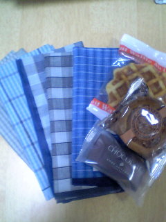 父の日でした。母の日よりも地味ですよね。実家の父には、毎年お決まりの、せんべいを郵送しました我が家の娘達は、今年は、どんなのをあげるのかなぁと思ったら・・・長女が、ハンカチ5枚で、次女が洋菓子ですうんなかなかいいやん夫は「ありがとう~」と嬉しそうでしたハンカチね、1枚100円だって~キャハハ