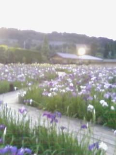 朝から、良いお天気でした梅雨とは思えないぐらい暑かったです午前は、マンドリンの集まりでした先生が「千の風になっての楽譜が手に入りました」とおっしゃいました。好きな曲なので、マンドリンで弾けるなんて嬉し~~い初見だったけど、結構 形になりました。簡単に弾けるように編曲されていたみたい。他には、ララのテーマ、大きな古時計、ひまわり、ああ、愛しいお父様を合奏しました。Hさんがお休みだったので、2ndマンドリンは、私一人で、かなり緊張して疲れました二人居ると、多少間違っても平気な顔をして知らん振りをします一人だと、バレバレです。しかも、一度も練習していなくて、下手くそもいいとこですでも、何とか2時間が終って、ホッとしました18時、夫が帰って来て、駐車場から「カメラ持って来て」と言うので、皆で出かけましたどこに行くのか、勿体ぶって言いません走ること、1時間ちょい。三田市の永沢寺に着きました花しょうぶ園が夜間解放しているのを何かで知ったみたい。10年ぐらい前の春に、一度訪れたことがありました。結構、つまらなかったのに・・・入園料が、なんと1人500円でしたゆっくり回っても、15分で終ってしまいました4人で15分2000円は高いっ暗くて上手く撮れていませんが、長女の携帯の画像です。それと、いつの間にか、私と夫の後ろ姿を撮られていました。ちょっとお恥ずかしいのですが、何か雰囲気のいい画像なので・・・帰り、道端に白い大きな動物が居て、ビックリして車を停めましたヤギでした。ロープ?で繋がれていて、愛想良く、しっぽを振ってこっちを見ているんです。すると・・・・ジョロジョロジョロ・・・おしっこをしてるんですその図です花しょうぶよりも、ヤギの方が楽しかったな帰り、イオンに寄って夕飯を食べて、買い物をして帰ったら、23時過ぎでした疲れたぁ。