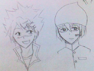 皆さん!今日発売のジャンプはもう買ったかな?いや、私のように立ち読見ましたか?(笑ついに★黒曜中メンバーの声優さんが発表されましたーー!!実は昨日の夜、ネットでフライング情報をゲットしてたのですが今日しっかりジャンプ見てきたのでこの目で確認してしまいました・・・!あぁホントに決まったんだー!ドキドキ!vv六道 骸→飯田利信さん柿本千種→豊永利行さん城島 犬→内藤 玲さん内藤さん以外はちょっと分からなくて調べたりしました。なるほど!皆さん声優さんなのですね!そして今また調べてみたら飯田さんは持田先輩役との事で・・・一瞬 持田先輩て誰?と思ったら、リボーン1話のあの剣道の先輩ですか!ようつべで探す探す。おぉ、やけに画質が綺麗なリボーン1話出てきた!(笑持田先輩・・・あぁ~こんなカンジだったかぁ・・・!てかついついずっと見ちゃいますね、1話懐かしいよ~!・・・1話の感想に脱線しちゃいそうなので(笑)気を取り直して!それから、飯田さんはクラッシュギアNitroのヒデ役だった事が昨日の夜分かってびっくりしました!私Nitro大好きでずーっと録画しながら見てましたからねー!久しぶりだ・・・!ビデオちゃんと残ってるので昨日寝る前に少しだけヒデの声を聞きました。うん、持田先輩と同じようなカンジです。骸さんのイメージとは違くとも喋り方とかが少し変わればこの声、骸さんにピッタリなんじゃないかな!?と思いました★いい線行ってると予想!あとのお2人もイメージとは多少ずれちゃうかもですが何かピッタリな気がしてきました・・・直感カナ!?黒曜中登場の日が より楽しみですね♪2月24日から!としっかりジャンプに書いてあったので・・・ドキドキです!シリアスストーリーはあまり好きじゃないんだけどね~;でも早く骸さん達をアニメで見たいな~、声が聞きたいな~★という気持ちはいっぱいですvv↑そしてこちら!土曜日深夜に気合入れて描いた黒曜メンバー★写真の写り悪いですね。暗くなっちゃってます すみません;これでもパソに送ってから明るくしたのですが・・・;描いてて楽しかったです!大きめに描いた骸さんが服着てなくて思いっきり裸状態なんですが(爆別に裸で描こうとして描いたわけじゃないんです!ホントだって!;ただ、肩幅ってどれくらいの広さならピッタリなのかな~・・・とか思いながら肩を描いていたら服忘れてたーみたいなカンジだったんですよ!(言い訳っぽいけどホントに!とにかく黒曜中大好き!!vvv(既に?アニメの方も大期待ですっ★
