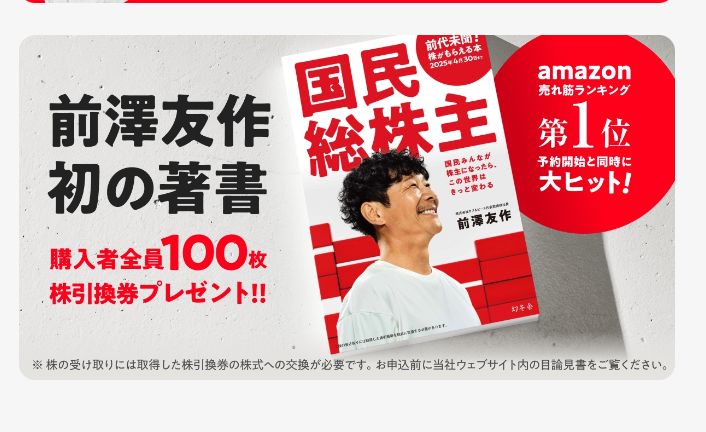 前澤さんのような成功者、お金持ちの方の考え方に触れたかったのと、購入者特典の株引換券が目的です