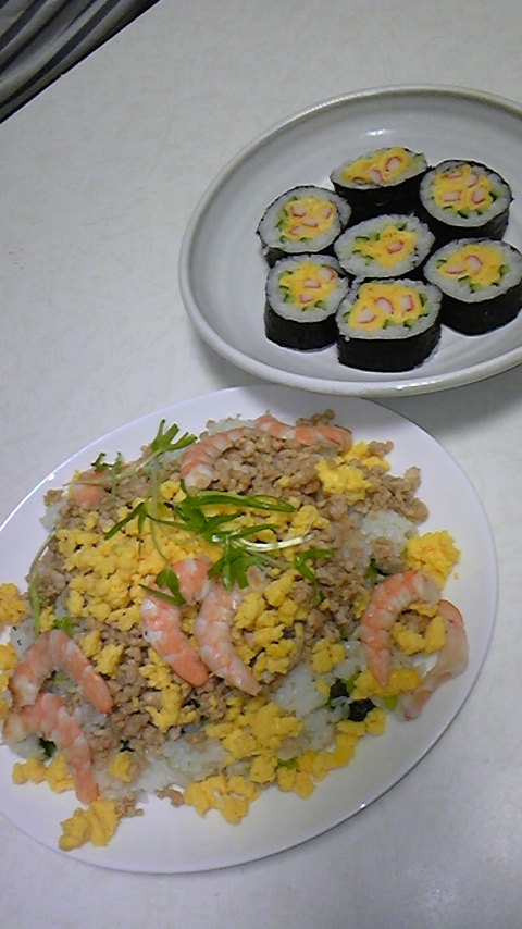 ひな祭りなので「ちらし寿司」「のり巻き」を作りました。もちろん美味しくいただきました。