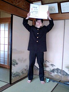 とうとう卒業式です!!緊張してきたー!!!というわけで、なぜかいつもより30分も早く起床・・・。とりあえず、朝飯食ったけど、電車までまだまだ時間がある・・・。なので、頭を洗いました・・・。頭を洗い終えて、髪を拭いていると、母がやった来たので、一言、自分「今日は気合が違うぜ・・・」そして、制服に着替えていたのですが、制服の下に長袖を着ると袖が制服から出てしまうので、自分「半袖二枚着よっかな・・・」とか思ったのですが、いざ二枚着てみると、無駄にゴワゴワする・・・。なので、半袖一枚で登校!さすがに制服の下、半袖1枚だけは寒かったです・・・。駅まで行く道でずっと震えてました・・・。そして、駅に着くとすぐにゼク氏がやってきました・・・。コイツに出会うのもたぶん今日が最後なんだろうな・・・。まあ、別に会えんくてもええけど・・・。そして、電車に乗り込むと気付いたのですが、T路君がいねぇよ・・・。最後の最後に彼も遅刻なのか、母上さんに学校案で乗せてってもらうつもりなんかな・・・。とか考えながら乗り口から外を見ると、久しぶりにT路君が全力疾走してる姿を見ました・・・。乗り込んできたT路君は「あ~しんどい・・・。とりあえず、座らしてくれ・・・」とか言って、バランスをとるために自分の制服の掴みながら入口付近に座ってました・・・。T路君よ・・・。近くにいる二年生の少年がウザそうに見てるぞ・・・。そして、なんか知らんけど、大量のストッパを見せ付けてきました・・・。T路君よ・・・。ストッパは自分の記憶が正しければ下痢止めだよ・・・。ストッパを飲んだところであんたの体力は復活せんから・・・。そして、電車を降りて思ったのですが、何で自分は傘を持ってきてないんだろう・・・。むっちゃ雨降ってるじゃないですか・・・。傘が無いので、T路君の「さあ!俺の傘を使いなさい!」てな感じの視線と言葉を受けとって、折りたたみ傘を借りていきました。折りたたみ傘はたたみ方がもひとつ分からんから使いにくいなぁ・・・。で、この後色々とありまして、結局学校に着いたときには、自分が使っていた傘は、O野君が駅構内にてパクったなんか汚い100円均一で売ってそうな傘でした・・・。小さいので制服とかカバンとか結構濡れました・・・。靴んなか浸水しまくりです・・・。そして、教室に入ると、昨日完成されたらしい文集が机の上に置いてありました。とりあえず、気になっていたアンケートの部分だけ見ました。載ってるよ・・・。自分の名前が載ってたよ・・・。「『青春』という言葉が似合いそうな人は?」の三位に載ってたよ・・・。ちょっと嬉しかったり・・・。てか、M部君の名前が意外にもたくさんありました・・・。自分が5個名前が載ってたのに対して、M部君は自分よりたくさん載ってました・・・。しかも、「実は好きだった人」の三位とかに・・・。この世には物好きな奴がたくさんいることに気付きました・・・。まあ、自分は「いい人そうな人」と「料理が上手そうな人」の二位に食い込むことが出来たのでそれでOKということで・・・。そして、朝のSHRをした後に、A石君とトイレに行ったのですが、トイレにはK平君がいたじゃないですか・・・。そして、K平君「最後に『萌え~』って叫んでくれ」とか言ってきました・・・。言うか!!!自分の代わりにT路君が叫んでくれるはずだから・・・。自分らがトイレから帰ってくると、T口君がみんなからのリクエストに答えて頑張ってました・・・。内容まではかけませんが、みんな拍手喝采でした・・・。T口君よ・・・。最後にいいもんみしてもらった・・・。そして、卒業式なんですが入場するときに、携帯を制服の内ポケットに入れっぱなしだということに気付きました・・・。てか、マナーモードにした記憶が無い・・・。まあ、鳴ったら鳴ったで記憶に残りそうなのでOKか・・・。式が始まって、名前を呼ばれて立ち上がる時、緊張しまくりでヒザが震えてました・・・。みんなの返事の大きさとか聞いてる余裕無かったです・・・。とりあえず、カンパチが気合の入った返事をしてたのは聞いたけど。そして、校長と来賓(K平君パパ)の話を頑張って聞いてたのですが、話の半分も覚えてない・・・。とりあえず、K平君のパパさんは式辞を噛み過ぎだ・・・。送辞と答辞のときはとりあえず「あ~卒業するんやな・・・」と感傷に浸ってました・・・。あっ・・・鼻水が・・・。薄着やからしょうがないな・・・。そして、最後に校歌斉唱。たぶん、今までで一番熱唱したかも・・・。今回は歌詞も間違えんかったし完璧や・・・。そして退場。前にいる先生の顔が見れません・・・。ああ・・・感動・・・。とりあえず、歩いている時は手と足が揃わないように気をつけてました。しかも、体育館から出たところに、K林先生が待ち構えてたじゃないですか・・・。なんかニヤッってしてました・・・。そして、二組男子全員が